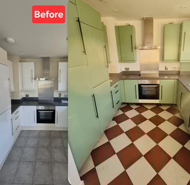 Having helped their daughter acquire her first property the parents were happy to see this top floor flat come alive in a unique style and feel. The tiling especially designed in harmony with the individuality of its new owner.